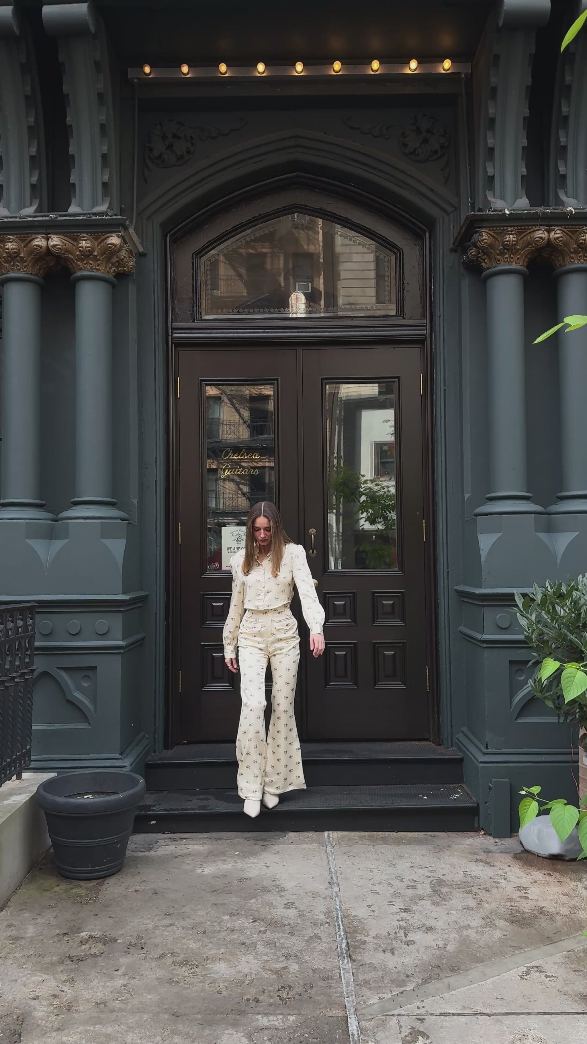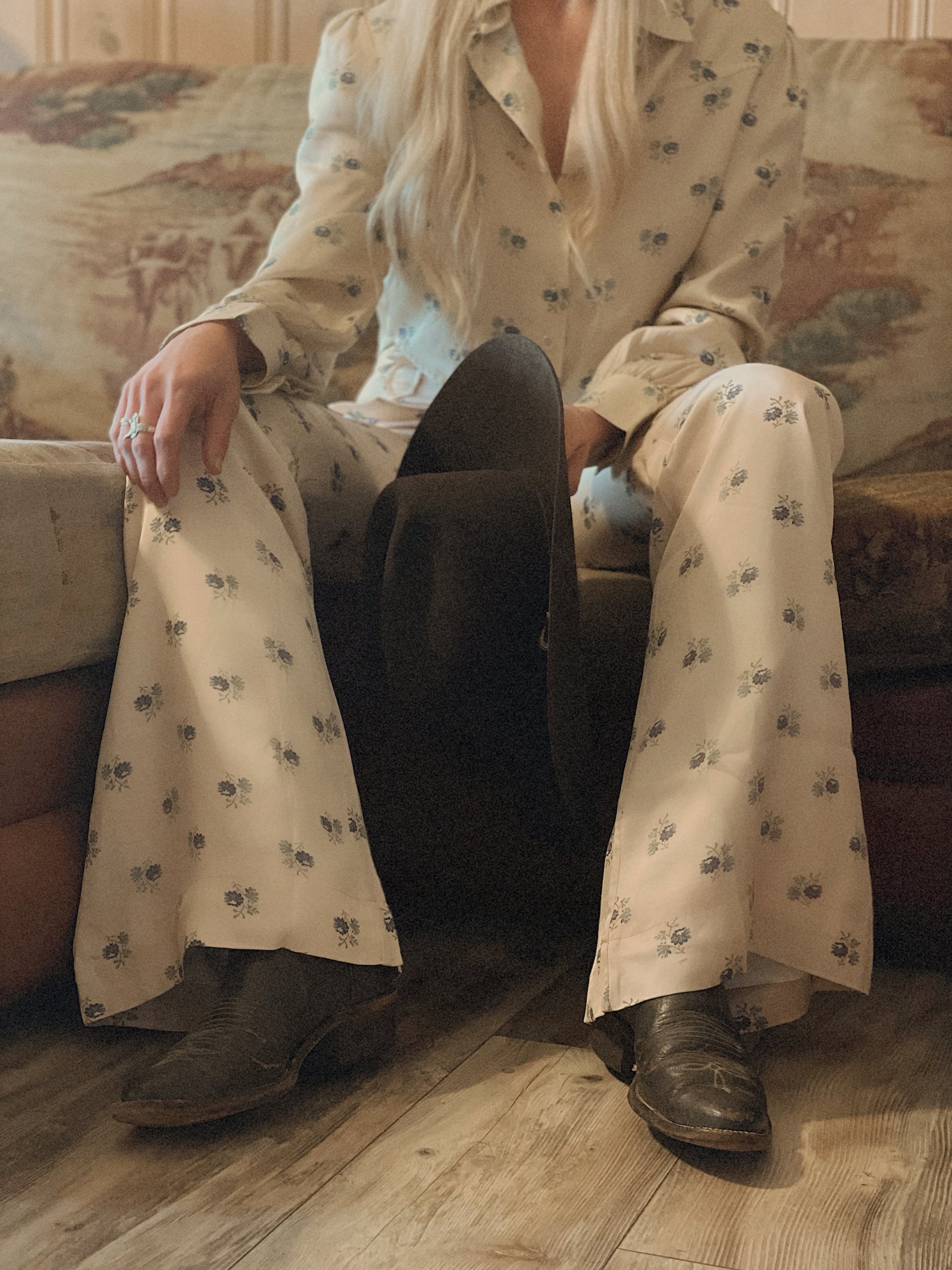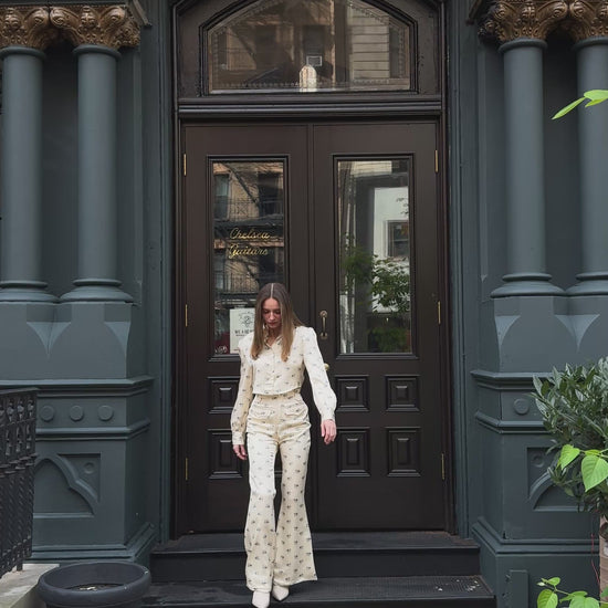 The Marlowe is a chic long-sleeve collared blouse with a flattering curved hem and cropped fit, offering a modern twist on Western-inspired style. Designed with our signature feminine yoke and faux glass buttons, this blouse showcases timeless details. Whether paired with our Bridget Bells, or your favorite vintage denim, the Marlowe effortlessly elevates any look.
